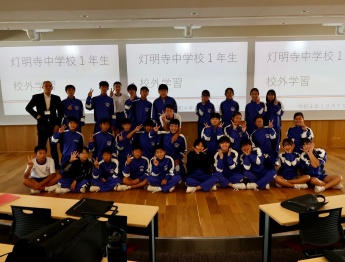 令和4年10月25日(火)に福井市の灯明寺中学校1年生の生徒さんが午前と午後の2部に分かれて大学へ校外学習に来られました。
