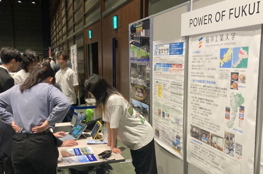本大会は、学生にとって原子力産業界の最新動向を知り、企業・研究者と直接交流できる重要な機会です。最新技術や人材育成に関するセッションの他、研究所・企業展示があり、本学は「POWER OF FUKUI」のブースで福井大・福井高専・福井南高校・(株)いやしStudioとともに、福井の原子力人材育成活動をテーマに出展しました。