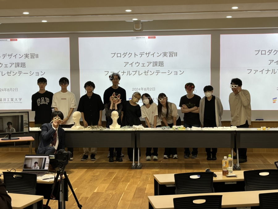 この講評会は、未来協働プラットフォームふくい推進事業(福井版PBL支援)に採択された事業(事業名称:「メガネ産業における後継デザイナー育成」)の一環で企画されたものです。