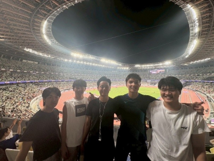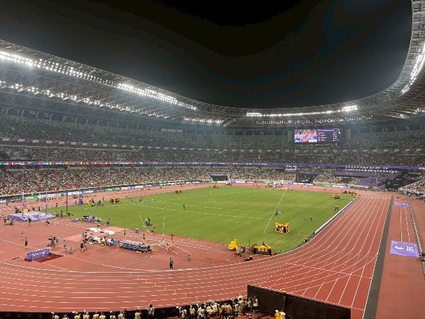 スポーツ健康科学科の課題解決型学習授業(PBL)「地域活性演習」におけるプロジェクト「地域で活躍するスポーツ指導者やスポーツチームスタッフを目指す実践的取り組み」(中垣内祐一教授・山元康平准教授)のとして、9月17日(水)~9月19日(金)の3日間の日程で東京2025世界陸上競技選手権大会の視察・研修活動を実施しました。視察・研修には教員1名(山元准教授)と学生5名(宇随健大郎、高田琉聖、田村煕一、能登悠晴、横山慶晟、スポーツ健康科学科3年生)が参加しました。当該競技会は、2年に一度開催される陸上競技の世界チャンピオンを決定するために世界トップアスリートが参加する世界最高峰の競技会であり,世界最大クラスの国際的スポーツイベントです。参加した学生は、世界トップアスリートのパフォーマンスの視察および世界最大のスポーツイベントの視察という観点から非常に貴重な体験となりました。
