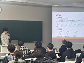 学生達はこれまで研究してきた内容のプレゼンテーションを行い、スポーツバイオメカニクス専門の先生方や学生と議論を交わしました。分析手法やデータの解釈、また、指導現場への活用の仕方など、多くの学びがあり、自身の研究内容についてより考えを深めることができたようです。また、他大学の研究発表を聴講できたことで、他競技の知見や様々な研究手法の情報などを得ることができました。