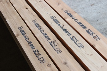 学生たちはまず、福井県木材市売協同組合で、木材の品質管理の重要性とその仕組みのレクチャーを受けた後、製材された柱材に対し、実際に認証が行われる現場に立ち会いました。