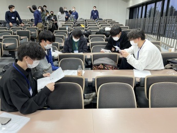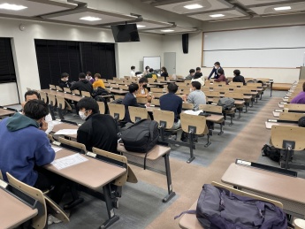 また、3年生6名も研究会に参加し、卒業研究構想発表を行いました。グループディスカッション形式にて学生同士で議論を交わし、自身の研究内容の方向性を決めていく非常に良い機会となっていました。