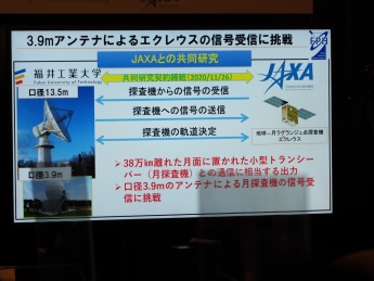 そのエクレウス衛星からの電波を、福井工業大学あわらキャンパスにこの8月に完成したばかりのアンテナ径3.9mのパラボラアンテナにより捉えることに成功。その情報は、エクレウス衛星の追跡管制を行っているJAXAに提供しています。
