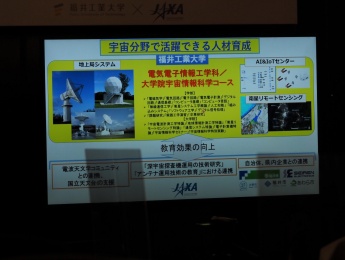 会見の中で、実際にあわらキャンパスで衛星からの受信データを実際にその目で確認した学生たちの様子なども紹介され、本学の地上局が壮大な宇宙プロジェクトと実際に関わることができる「感動」が伝えられました。