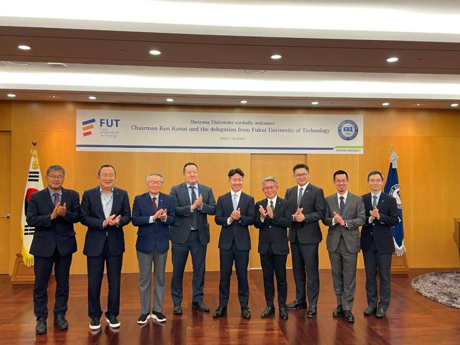 On Thursday, July 18, 2024, Chairman Kanai, Corporate Planning Director Kanai, and Dr. Bradford Lee, Director of the International Center, visited Myongji University (partner university) and Hanyang University in South Korea. During the visit, they reaffirmed their commitment to actively engage in academic exchanges, including joint research and seminars between the universities, student exchanges, faculty and staff dispatch, and reciprocal visits. The universities will continue to advance these comprehensive collaboration activities.