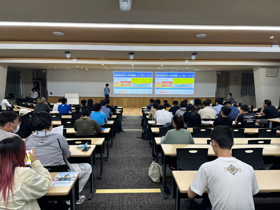 お知らせ NEWS & TOPICS トップページ お知らせ インターナショナルセンター 留学生を対象に夏季休暇前オリエンテーションが開催されました 2024.08.02 留学生を対象に夏季休暇前オリエンテーションが開催されました 令和6年8月1日(木)、留学生対象の夏季休暇前オリエンテーションが開催され、約75名の留学生が参加しました。 最初に、インターナショナルセンター長のリー先生からご挨拶があり、続いてFUKUI外国人材受入サポートセンターから在留資格などについての説明がありました。その後、福井県福井警察署から国内での運転について、また運転免許証について説明があり、最後にインターナショナルセンターから夏休みまでに必要な手続きや注意事項の説明がありました。 お問い合わせ:インターナショナルセンター PREV 一覧に戻る NEXT