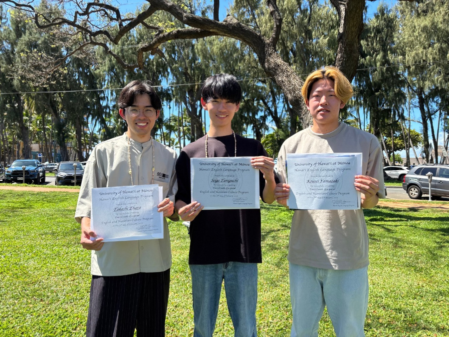お知らせ NEWS & TOPICS トップページ お知らせ インターナショナルセンター 2024年度春季語学研修(ハワイ大学マノア校)について 2025.03.05 2024年度春季語学研修(ハワイ大学マノア校)について 2024年度春季語学研修が2月16日(日)から3月2日(日)までの2週間、学術交流協定校であるハワイ大学マノア校にて実施されました。3名の学生が参加し、現地での英語学習やアクティビティ、約2週間のホームステイを通じて充実した研修を終え、無事に帰国しました。留学前には英語に慣れるため、SPEC教員が主催する英会話カフェなどに積極的に参加しました。これらの経験を含め、今回の留学で得た学びを糧に、今後の大学生活をさらに充実させてほしいと願っています。 お問い合わせ:インターナショナルセンター PREV 一覧に戻る NEXT