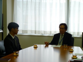 9月14日、大学院工学研究科博士前期課程社会システム学専攻にスパナット・ティアンヒランさんが入学し、学長室において学生と森島学長他7名の先生方との懇談会を行いました。