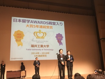 本日、2018年日本留学AWARDS表彰式・大賞校発表が国立オリンピック記念青少年総合センター小ホールにて行われ、西日本地区私立大学理工系部門において、5年連続で大賞を受賞し、殿堂入りを果たしました。