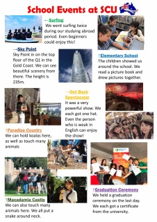 2019年2月上旬~約1か月の期間、オーストラリア サザンクロス大学(協定校)にて実施した語学研修の報告会を開催しました。報告会には、参加者の友人や教職員をはじめ、他の留学プログラムで海外渡航をした学生が集まり、情報や意見交換が行われました。