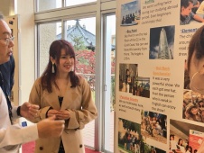 今回の報告会は、これまでのグループプレゼンテーションからポスターセッションに変更し、現地での体験を自身の言葉で説明する形式にしました。報告会当日は、日本語でのやり取りが中心となることが予想されていましたが、情報交換のほとんどが英語でなされ、英語力の向上や前向きに英語を話そうとする姿勢を見て感じ取ることが出来ました。