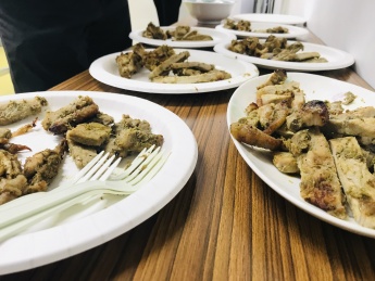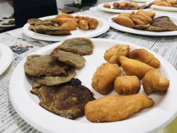 7月18日(木)16時から基盤教育機構 外国人教員主催によるJamaica Partyを開催しました。当日は40名を超える学生が参加し、ジャマイカ出身の本学教員から文化・歴史について学びました。その後、教員が準備したジャマイカ料理、フェスティバル(小麦粉やコーンミールなどを混ぜて揚げたお菓子)、バナナフリッター(バナナを使用したお菓子)、ジャークチキン(鶏肉をスパーシーな香辛料で味付けした料理)がふるまわれました。学生たちは、初めて食べるジャマイカ料理にドキドキしながらも嬉しそうに頬張っていました。