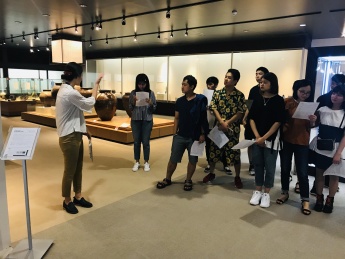 午前中に福井県陶芸村の陶芸館を訪れ、絵付け体験、茶道体験、陶芸資料館を見学しました。日本六古窯に数えられる“越前焼”の説明や、実際に陶器への絵付け体験、その越前焼の茶碗を使用して茶道を体験することで、留学生たちは日本文化に多く触れることができました。