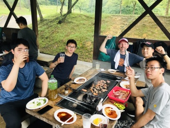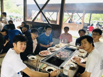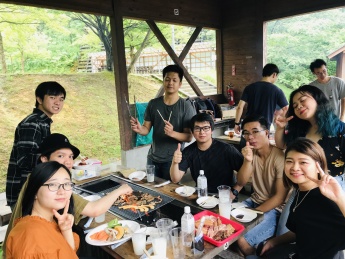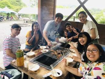 午後からは越前市みどりと自然の村へ移動し、バーベキューを行いました。心配していた雨もやみ、学生たちはバーベキューを通して、交流を行いました。