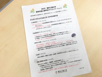 このオリエンテーションは、長期にわたる休暇を前に、注意すべき点や帰国に向けて備えておくことを確認する場であり、外国人留学生は参加必須となっています。