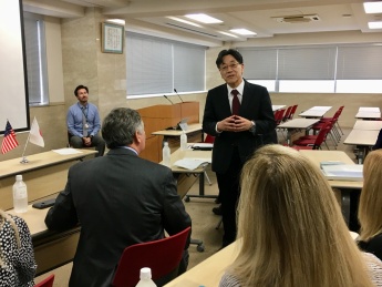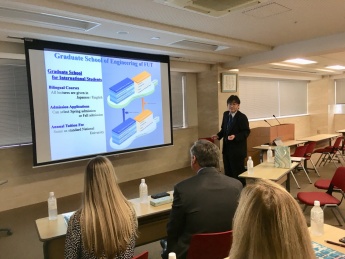 その後、尾崎インターナショナルセンター長より福井県や本学の概要について、インターナショナルセンターの取り組みや本学に在籍する留学生について説明を行いました。