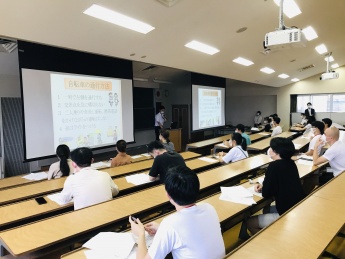 その後、福井警察署員による防犯セミナーが開催され、災害や事件事故への備えについて学びました。最後に、国際交流課よりコロナ禍での過ごし方など夏季休暇中に注意すべき点や後期の授業開始に向けた諸準備について説明がありました。