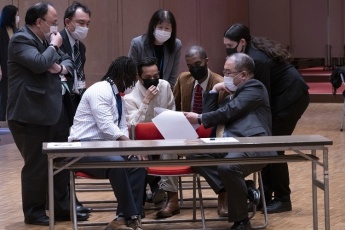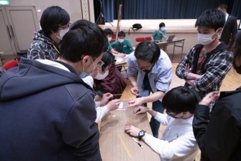 初めにブラッドフォード・リー インターナショナルセンター長から開会のご挨拶があり、その後、9チームに分かれて、先輩スタッフたちが考案した謎解きゲームやマシュマロタワーゲームを対抗戦で行いました。最初は緊張していた新入留学生たちも徐々に打ち解け、同じチームの先輩留学生たちと力を合わせて難問に挑んでいました。