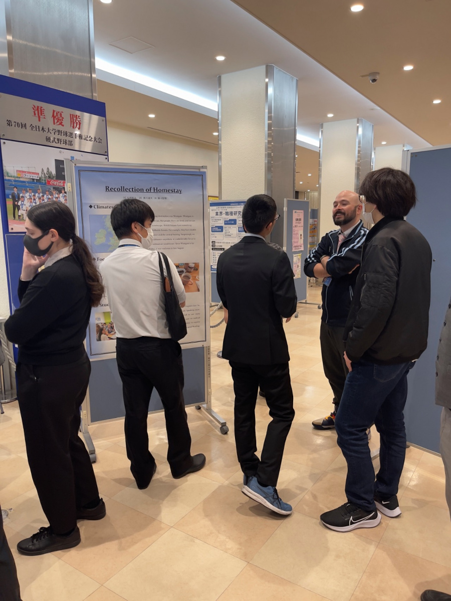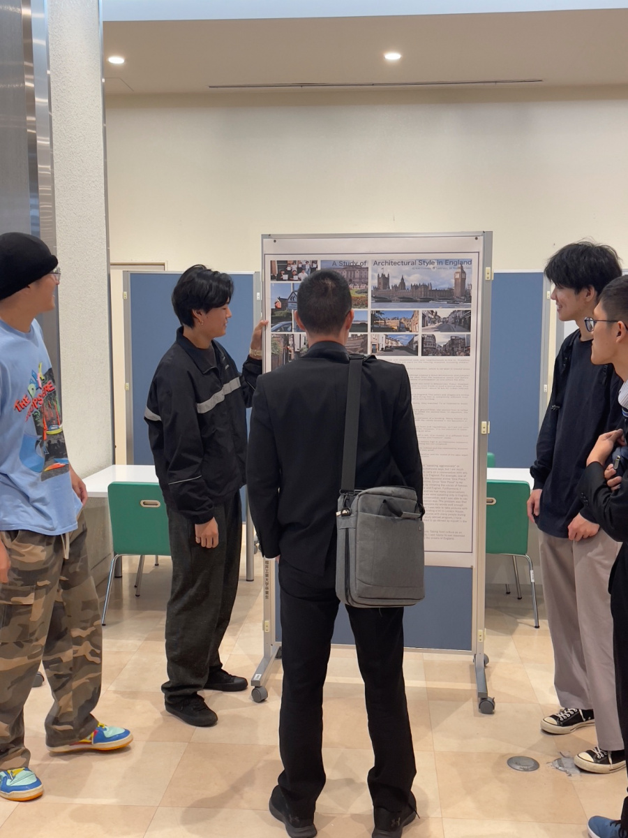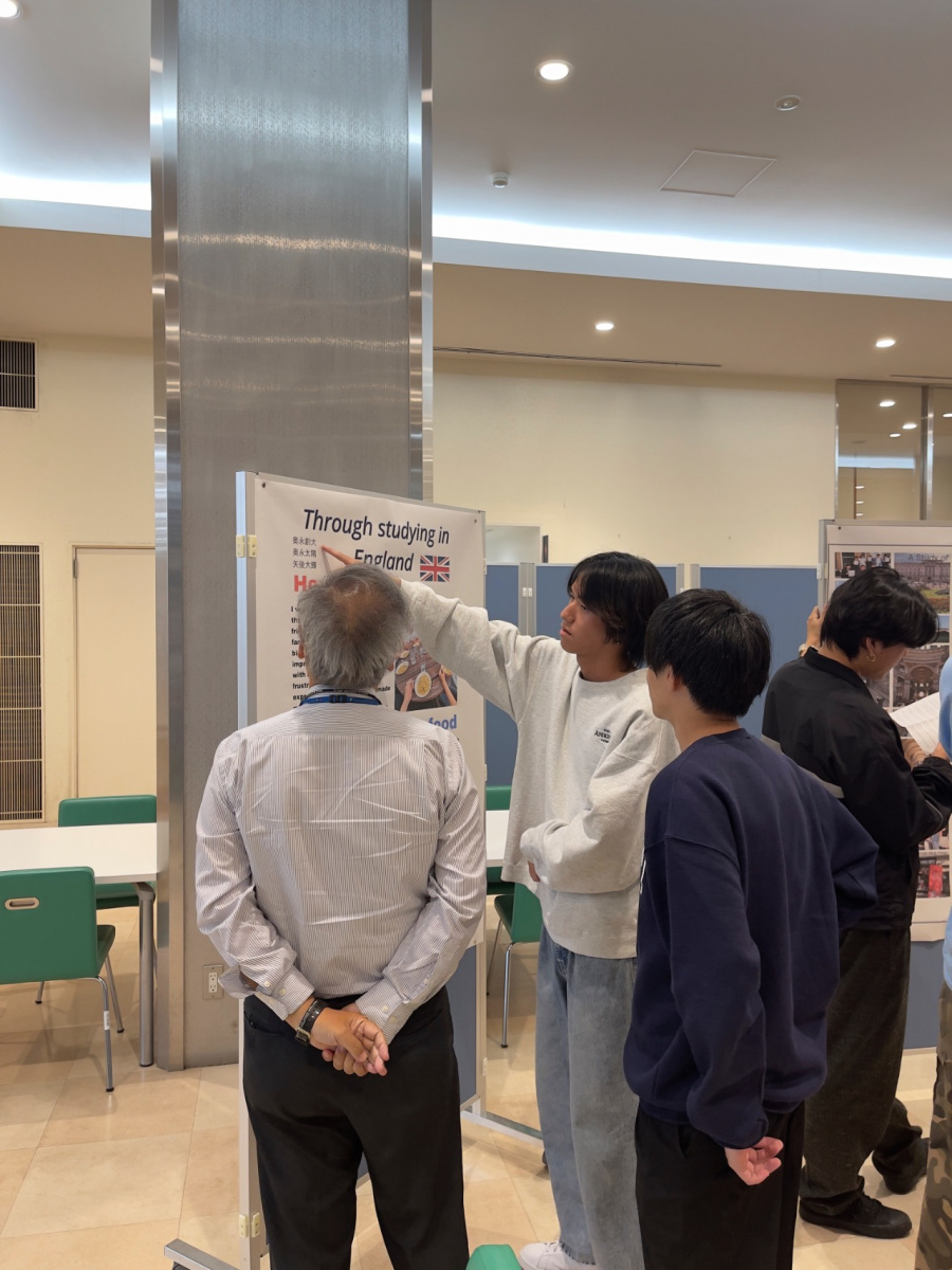 9人の学生がそれぞれ2週間のイギリスでの語学研修を通し体験し感じたことや、自身について成長したこと・変化を感じたことなどをポスターセッションにて発表を行いました。彼らは積極的に来場者に彼らの経験について英語で語り、来場者の質問にも英語で答えるなど2週間の学習を通して得た成長をしっかり示してくれました。