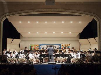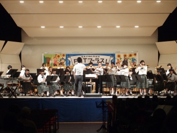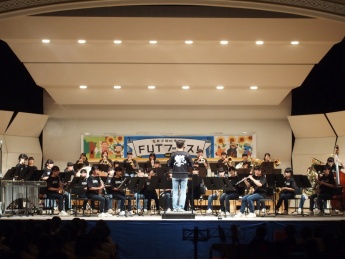 いよいよ午後からは、合同演奏会「FUTブラス!」が始まりました。各団体の単独演奏では、コンクールの課題曲や自由曲をはじめ、ポップスは個性溢れる演出や踊りもあり、来場者を楽しませていました。その後、全員演奏で総勢200名以上という大人数での演奏が行われました。午前中だけの練習とは思えない、とても迫力があり、かつ重厚なサウンドで圧巻の演奏でした。全員演奏では、嵐の「Happiness」とSMAPの「世界に一つだけの花」を演奏し、華々しくかつ大感動に包まれ、演奏会の最後を飾るにふさわしい演奏でした。大感動の余韻が残り、惜しまれつつではありますが、「FUTブラス!」全てのプログラムを終了致しました。