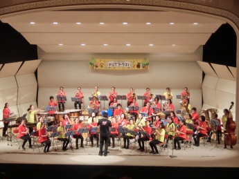 午前中は各団体のリハーサルから始まり、招待校の単独演奏の舞台練習でバランスや響きや演出の立ち位置などを確認していただきました。その後、出演者全員金井講堂へ集まり、全体朝礼を行い、各団体の代表者が個性豊かなパフォーマンス(寸劇やダンス)を発表する交流会で、緊張をほぐしてもらいました。その後、出演者総勢250人以上での全員演奏の舞台練習と続きました。お昼には学園ロビーや学園食堂へ移動してもらい、楽器のパート毎に和気あいあいとした雰囲気で昼食をとっていただきました。