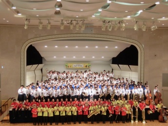 いよいよ午後からは、合同演奏会「FUTブラス!」が始まりました。各団体の単独演奏では、コンクールの自由曲をはじめ、ポップスは個性溢れる演出や踊りもあり、来場者を楽しませていました。その後、全員演奏で総勢250名以上という大人数での演奏が行われました。午前中だけの練習とは思えない、とても迫力があり、かつ重厚なサウンドで圧巻の演奏でした。全員演奏では、RADWIPSの「前前前世」を演奏し、華々しくかつ大感動に包まれ、演奏会の最後を飾るにふさわしい演奏でした。大感動の余韻が残り、惜しまれつつではありますが、「FUTブラス!」全てのプログラムを終了致しました。