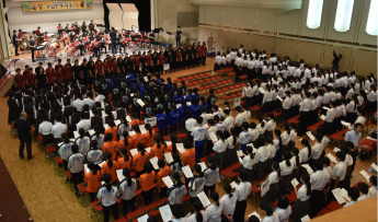 どちらの「FUTブラス!」も、最初は全体朝礼で出演者全員が集まり、その後、各団体の代表者が個性豊かなパフォーマンス(寸劇やダンス)を発表する交流会を行い、緊張をほぐしてもらいました。そして演奏会が始まりました。演奏曲目は、クラシック曲だけでなく、POPSなども演奏している団体もあり、会場内は大変盛り上がりました。各参加者は演奏者としても鑑賞者としても大いに刺激を受ける一日となったようで、何より他校の演奏を楽しんでいる皆さんの様子が印象的でした。大感動の余韻が残り、惜しまれつつではありますが、「FUTブラス!」全てのプログラムを終了致しました。