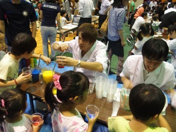そして、今回は本学の環境食品科学科の学生も実験補助として参加し、たくさんの子供たちとの交流を深めることができました。学生にとっても良い経験、良い思い出になったのではないかと思っております。