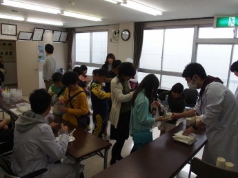 お知らせ NEWS & TOPICS トップページ お知らせ 科学実験キャラバン 科学実験キャラバン in 東安居公民館 2016.10.25 科学実験キャラバン in 東安居公民館 10月23日(日)東安居公民館にて科学実験キャラバンを行いました。 今回は原子力応用工学科の砂川武義教授と原子力応用工学科の学生7名による「はちみつスライム」と「キラキラ光るスライム」の2つの体験を行い、幼児~中学生の324名が来てくださいました。 スライム作りを体験してくださった子どもたちは、感触を楽しんだり、スライムが出来上がる工程を見ながら、とても嬉しそうにしてくれていました。 また、本学の学生たちもスライム作りの補助をし、一緒に楽しんで作業を行っていました。 お問い合わせ:社会連携推進課 PREV 一覧に戻る NEXT