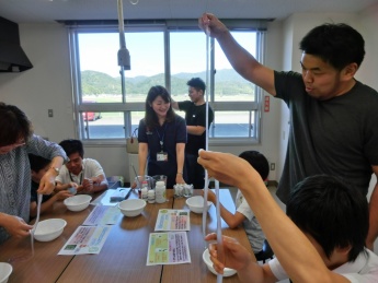 お知らせ NEWS & TOPICS トップページ お知らせ 科学実験キャラバン 科学実験キャラバン in 福井県立盲学校 2019.06.18 科学実験キャラバン in 福井県立盲学校 2019年6月17日(月)福井県立盲学校にて科学実験キャラバンを実施しました。今回は、はちみつスライムを直に手で混ぜるという初めての試みでうまくいくか心配でしたが、見事成功!生徒さん達にとって水からとろみがついた感触、そしてとろみから一塊になっていく感触はおもしろいものだったようで、大喜びでした。福井県立盲学校の生徒、教職員の皆様ありがとうございました。 お問い合わせ:社会連携推進課 PREV 一覧に戻る NEXT