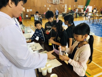 お知らせ NEWS & TOPICS トップページ お知らせ 科学実験キャラバン 科学実験キャラバンin東安居公民館まつり 2019.10.29 科学実験キャラバンin東安居公民館まつり 2019年10月27日(日)、福井市の東安居小学校にて開催された「東安居公民館まつり」にて、科学実験キャラバンを実施しました。今回は、お祭り会場にはちみつスライム作りの体験コーナーを設置しました。思い思いの色で作ったスライムを手に取ると、ぷるぷるとした不思議な感触に驚きながら楽しそうに遊んでいました。おかげさまで体験コーナーは大好評、終始子どもたちの列が絶えることがありませんでした。参加してくださったみなさん、東安居公民館スタッフの皆様、ありがとうございました。 お問い合わせ:社会連携推進課 PREV 一覧に戻る NEXT