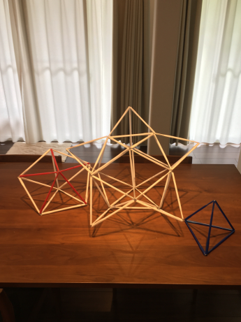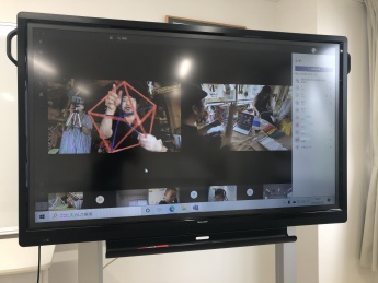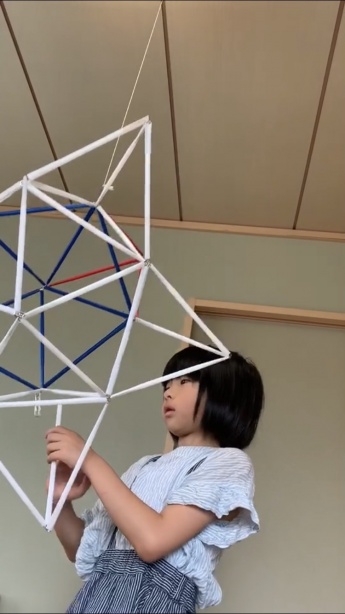 最初は簡単な正四面体から始まり、最終的には、大きくて複雑な正二十面体を完成させることができました。パソコンの画面を通してではありますが、「できた!」の声をたくさん聞くことができ、こちらも大変嬉しく思いました。初めての試みということもあり、テレビ会議システムの接続などでトラブルはありましたが、受講後のアンケートでは、概ね満足いただけたようで、「楽しく参加できた」「子どもにとっていい勉強になった」とのうれしい感想もいただくことができました。