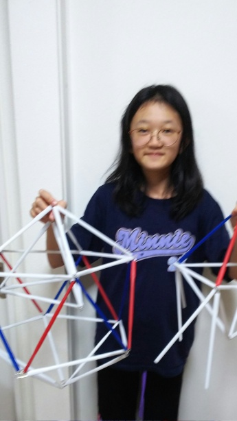 工学部建築土木工学科の清水俊貴准教授が講師となり、ストローとゼムクリップを使って立体図形、正二十面体づくりに挑戦しました。
