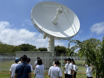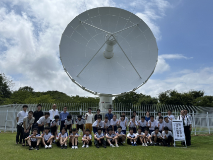 今回の科学実験教室では、物理・化学・生物の3つの講座を開講し、その後、口径13.5mのパラボラアンテナと運用室の特別見学会を行いました。