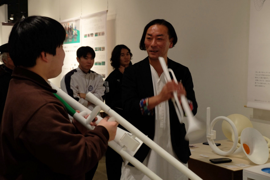 この制作展は、4年間学んだ集大成として取り組んだ卒業研究作品・論文を展示するものであり、卒業研究の成果に加え、1~3年生の優秀作品や大学院生の研究成果も展示されました。デザイン学科の教育内容を学外の方に広く知っていただく貴重な機会となりました。