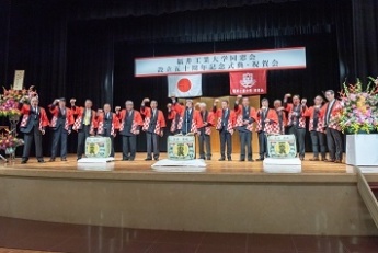 お知らせ NEWS & TOPICS トップページ お知らせ その他活動 第9回ホームカミングデーを開催しました。 2019.12.09 第9回ホームカミングデーを開催しました。 同窓生との交流企画「ホームカミングデー」を、11月30日(土)に開催しました。なお、本年度は、本学同窓会設立50周年記念企画として、本学同窓会と共同にて記念式典・祝賀会に併せて開催しました。 ホームカミングデーでは、同窓生の方々へ本学の近況を掛下学長よりご説明して頂きました。その後、施設見学ツアーを行いました。 記念式典・祝賀会には、本学から掛下学長、学校法人金井学園 金井 兼理事長をはじめ、多数の教職員が参列し、本学同窓会 山田 健治 会長をはじめ同窓会本部役員、各支部長、全国から多数の会員の皆様がご出席された、厳粛かつ盛大な記念式典・祝賀会となりました。 お問い合わせ:社会連携推進課 PREV 一覧に戻る NEXT