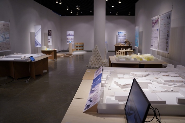 また、12日(最終日)には建築家・Studio Tokyo West代表瀬川翠さんの講演会も開催され、自分に降りかかる様々な機会を、社会や他者のために積極的に事業化されていく楽しい物語をお聞かせ頂きました。身の丈を少しだけ超えながら挑戦していく姿に、一歩踏み出すことで未来が拡がることを感じ、社会のために必要なことに挑戦する大切さを学びました。その後、実際に展示されている作品について講評もいただき、学生たちも真摯に聞き入っていました。