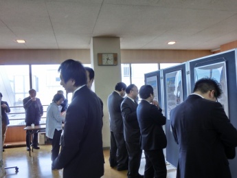------- 福井県内の各公設機関、大学高専等の研究者等がパネル前で、研究内容をご説明 -----