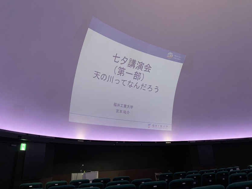 令和6年7月7日(日)セーレンプラネットにて、七夕講演会が開催され、工学部 電気電子情報工学科 宮本祐介教授が第1部「天の川ってなんだろう?」の講演を行いました。