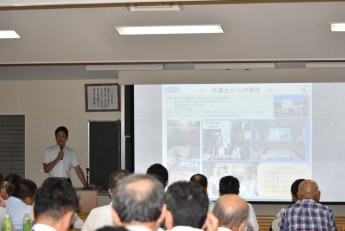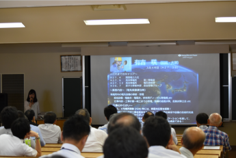今回の講座は基調講演と聴講者とのフリートーク、さらに卒業生、在校生による仕事や研究の現況発表の3部構成で行われ、基調講演では、「産学官連携による地域イノベーション創出に向けた取組み」(文部科学省科学技術・学術政策局産業連携・地域支援課長 西條正明氏)、「原子力産業の現状と見通しおよび将来を担う人材」(関西電力株式会社代表取締役副社長兼原子力事業本部長 豊松秀己氏)、「三宅正宣先生に教えて頂いたこと・原子力研究と人材育成をめぐって」(近畿大学理工学部教授兼学生部長 渥美寿雄氏)について発表がありました。