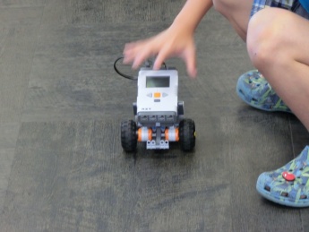 次に、課題「障害物に触れずに8の字に走行するロボット」のプログラムに挑み、ロボットが途中で止まったり違う向きに走ったりすると、直ぐにプログラムを変更するなど何度も挑戦し、無事完走した時には歓喜の声を上げていました。