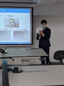 お知らせ NEWS & TOPICS トップページ お知らせ FUT公開講座 未来塾FUT公開講座「圧電素子を用いた力学的環境発電」を開催しました。 2020.12.14 未来塾FUT公開講座「圧電素子を用いた力学的環境発電」を開催しました。 令和2年12月12日(土)に工学部 機械工学科 西山直杜講師による未来塾FUT公開講座「圧電素子を用いた力学的環境発電」を開催し、2組5名の方にご参加いただきました。 本講座では物体の振動を利用して電気エネルギーを発生させる環境発電について説明を受けた後、実際に「発電うちわ」を作成し、LEDライトを光らせました。参加者は好きな色のLEDライトを選び、ワイヤーの接続や回線をつなぐ作業を行い、うちわに色を塗ったりして楽しみながら発電うちわを完成させていました。 ご参加いただいた皆様、本当にありがとうございました。 お問い合わせ:社会連携推進課 PREV 一覧に戻る NEXT