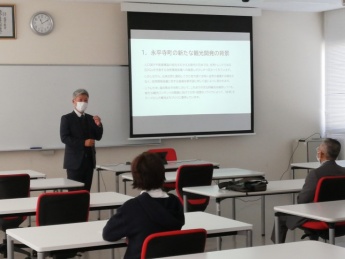 お知らせ NEWS & TOPICS トップページ お知らせ FUT公開講座 FUT公開講座「永平寺町観光まちづくりの発想と展開」を開催しました。 2022.12.12 FUT公開講座「永平寺町観光まちづくりの発想と展開」を開催しました。 令和4年12月3日(土)、工学部 建築土木工学科 下川勇 教授(FUT城郭研究所)による永平寺町の自然と歴史、観光について考える講座を開催し、6名の方にご参加いただきました。 講座では、永平寺町の自然と歴史を再解釈し、町内全域の観光システムを再構築する取組について下川先生より説明をしていただきました。参加者の方々はメモを取るなどして先生の講義を聴講し、最後には様々な視点からの意見やご質問をしていただきました。 ご参加いただきました皆さん、ありがとうございました。 お問い合わせ:社会連携推進課 PREV 一覧に戻る NEXT