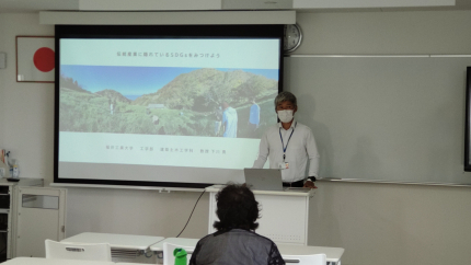 お知らせ NEWS & TOPICS トップページ お知らせ FUT公開講座 FUT公開講座「伝統産業に隠れているSDGsをみつけよう」を開催しました。 2023.06.10 FUT公開講座「伝統産業に隠れているSDGsをみつけよう」を開催しました。 令和5年6月10日(土)、工学部建築土木工学科 下川 勇 教授によるFUT公開講座「伝統産業に隠れているSDGsをみつけよう」を開催しました。 講座では、越前町上岬地区梨子ヶ平集落で行われている「水仙農業」について説明があり、普段している水仙農業の活動をSDGsを意識して考えみると、潜在的にSDGsの目標「11.住み続けられるまちづくりを」「15.陸の豊かさも守ろう」などに繋がっているとの報告がありました。 報告後、参加者から多数の質問等があり非常に有意義な講座となりました。 ご参加いただきました皆様ありがとうございました。 お問い合わせ:社会連携推進課 PREV 一覧に戻る NEXT