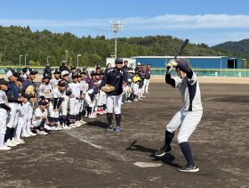 最後には、大学生のエースと4番による試技が行われ、球のスピードや打球の飛距離に子どもたちが驚いていました。