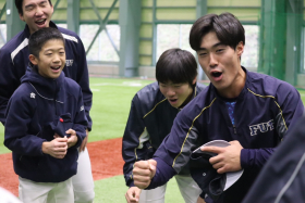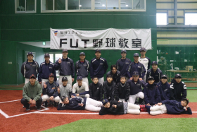 本学では硬式野球部が、地域貢献、地域スポーツ活性化、技術力向上を目的として、平成23年度より小中学生対象のFUT野球教室を開催しています。