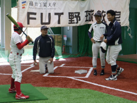 本学では硬式野球部が、地域貢献、地域スポーツ活性化、技術力向上を目的として平成23年度より小中学生対象のFUT野球教室を開催しております。