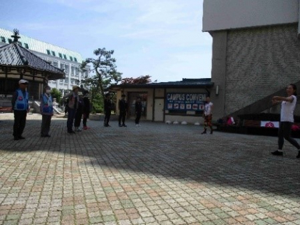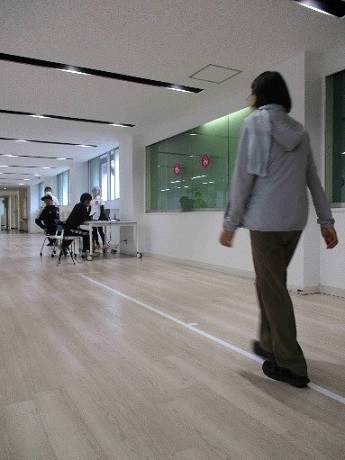 本学からは、スポーツ健康科学科3年次科目「地域活性演習Ⅰ」(坂﨑教授担当プロジェクト)の履修生6名(うち5名は男子ホッケー部)が、歩行姿勢測定とポスチャ―ウォーキングのレッスンに分かれて参加しました。