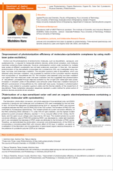 論文 | 2015.9. | Application of a Noncarboxylated Dye Compound in a Dye-Sensitized Solar Cell Containing a Cyclodextrin Layer | Int. J. Photoenergy 2015.Article ID 786246 | 院生_竹下(丸岡高).学部生_大西(羽水高) |